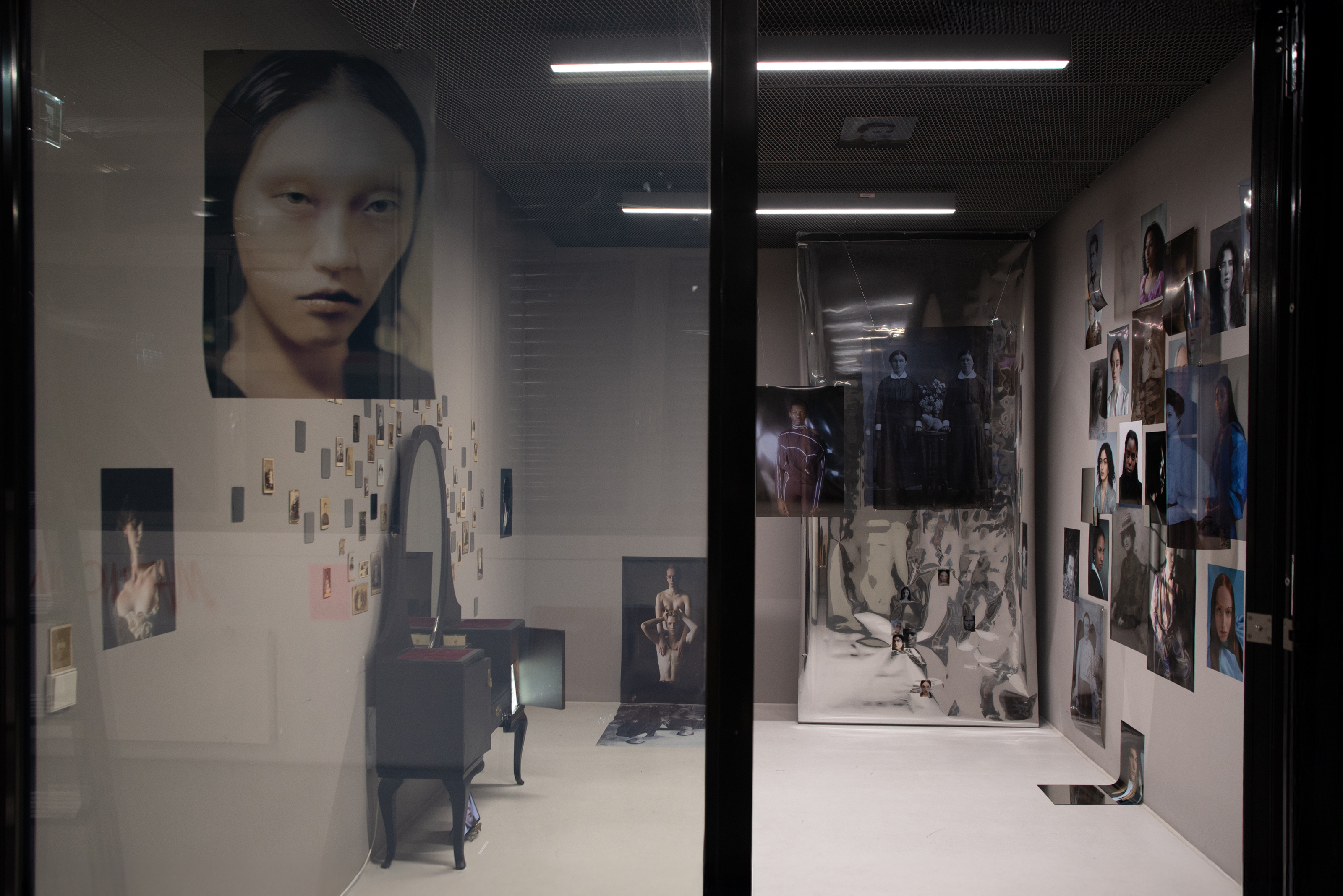 In "Beyond the Gaze", the process unfolds dynamically: newly created portraits intuitively draw upon collected historical photographs. A selection of these is reexamined, altered, and re-framed through the lens. Poses and gazes, deeply internalized, emerge naturally, without conscious intention. These layers interweave, creating a seamless connection between past and present. The stillness in the images resonates with Henri Bergson’s concept of time as an uninterrupted flow—subjective and immeasurable. Faces separated by more than a century meet in silent kinship, creating a dialogue between the visible and the unspeakable. The ephemerality of the moment captured by photography points to what remains hidden. This work becomes a journey of self-exploration, moving through the faces and stories of others, while holding a mirror to one’s inner experience.